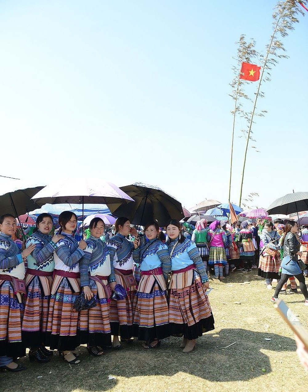 Từ sáng sớm, những cô gái Mông với chiếc váy và ô đầy màu sắc cùng những thanh niên trai tráng với chiếc khèn đã tề tựu ở bãi đất trống chuẩn bị tham gia phần lễ và hội của lễ Hội Gầu Tào.